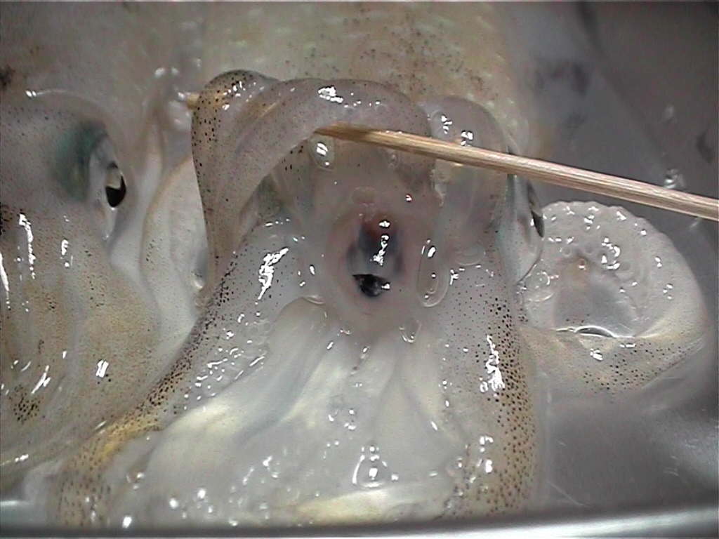 スミイカだけが生きて持ち帰れました。写真のスミイカはまだ生きてます。